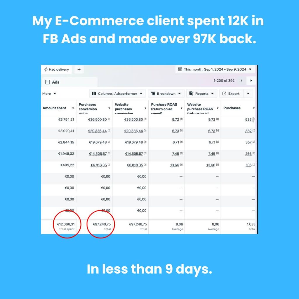 My name is Dominic, and I’m the founder of Adsperformer ApS – an online marketing agency based in Copenhagen, Denmark, which uses the power of strategic AI Meta ads to takes E-Commerce Brands from €30k+/mo to 6-figure months in less than 60 days.